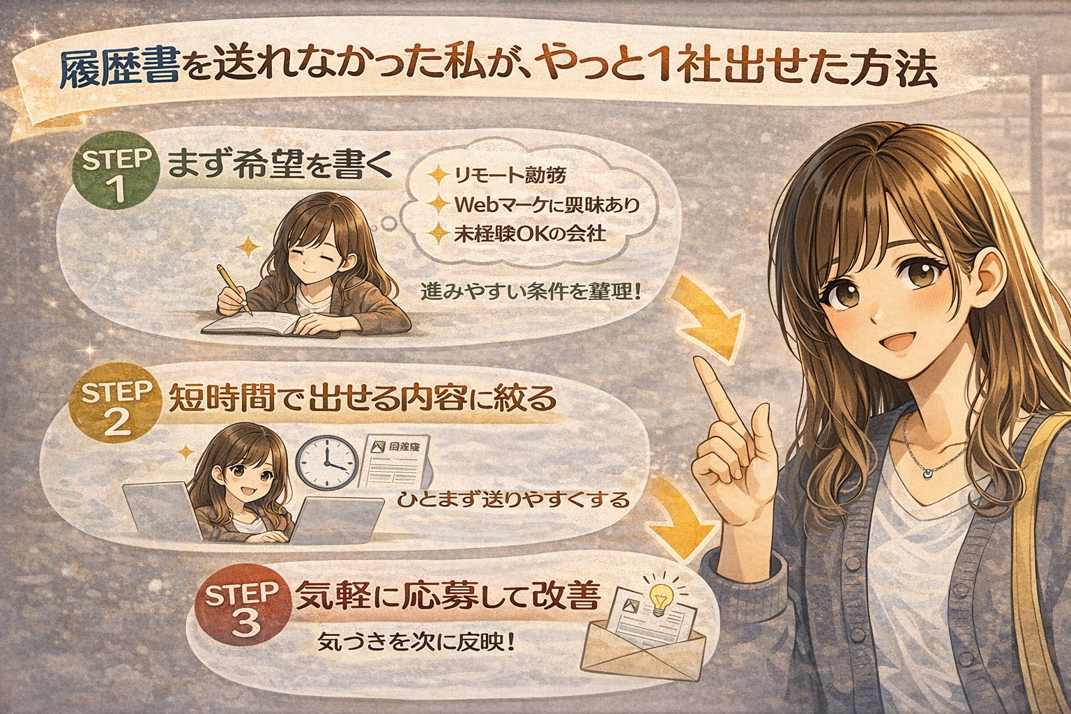 Web業界に行きたい。 そう思ってから、実際に履歴書を送るまでにとても長い時間がかかりました。 書類を作って、求人を探して、応募ボタンも見つけていたのに。 最後のクリックができなかった。 怖かったから ...